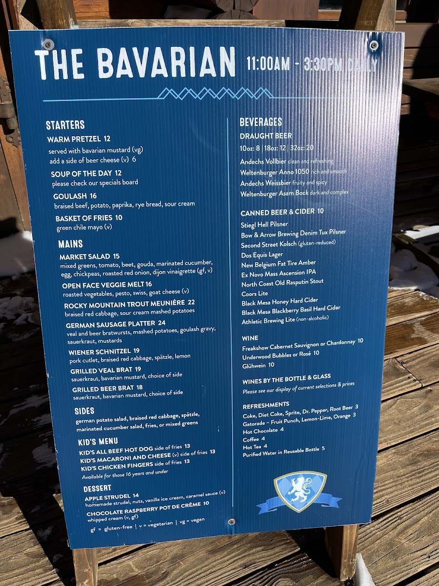 Welcome to The Bavarian Restaurant, nestled in the heart of Taos Ski Valley. Here, you can experience an authentic taste of Germany amid stunning mountain views. The menu offers a delightful array of options, from hearty dishes like Pork Schnitzel Sandwich and Grass Fed Beef Burger to comforting staples like Spatzle and Warm Veggie Tartine. Each dish bursts with flavor, providing the perfect fuel after a day of adventure.